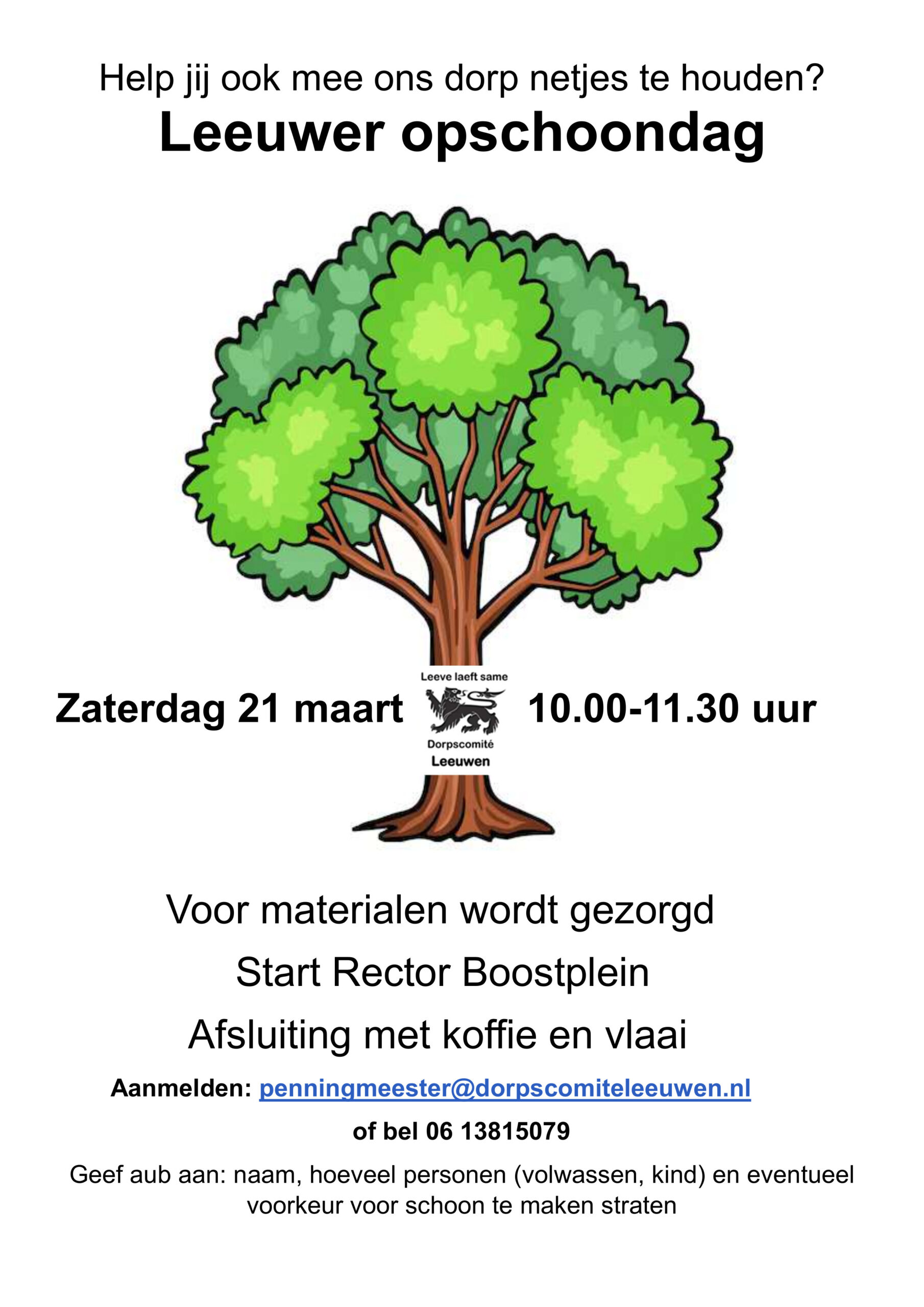 Meer info op LeeuwenDoet.nl Onder begeleiding van de Fanfare zullen we gezamenlijk vanuit het Rector Boostplein naar het voetbalveld trekken. Uiteraard zal er ook een [...]